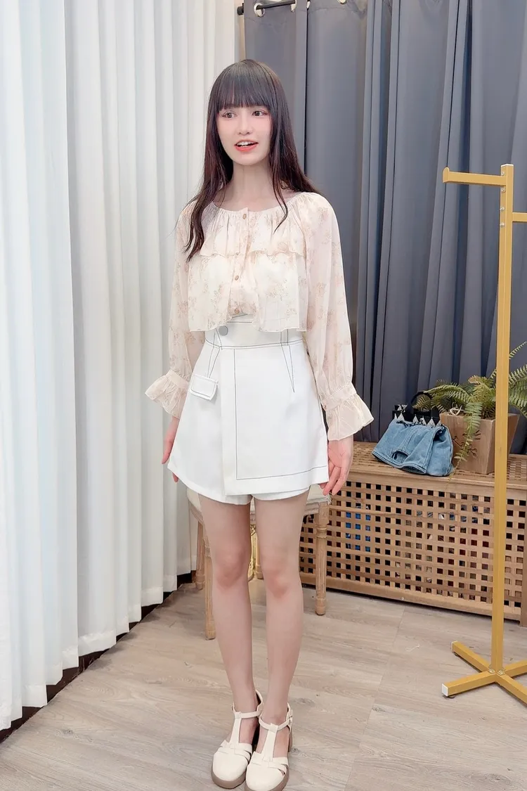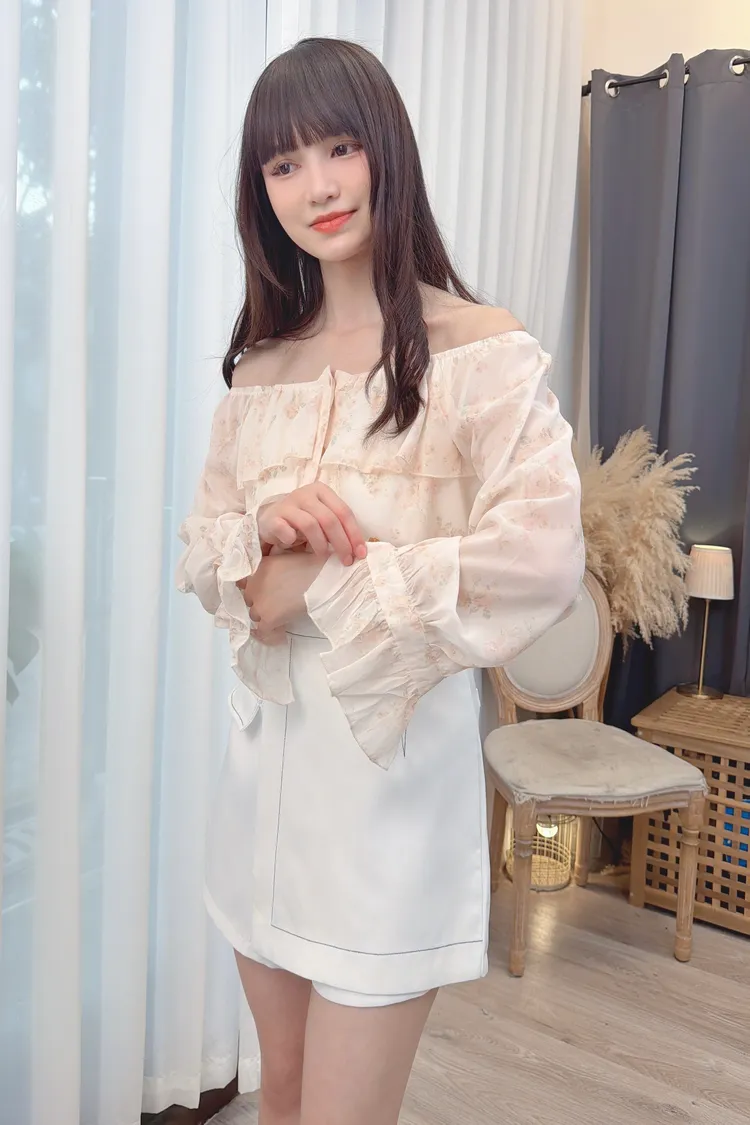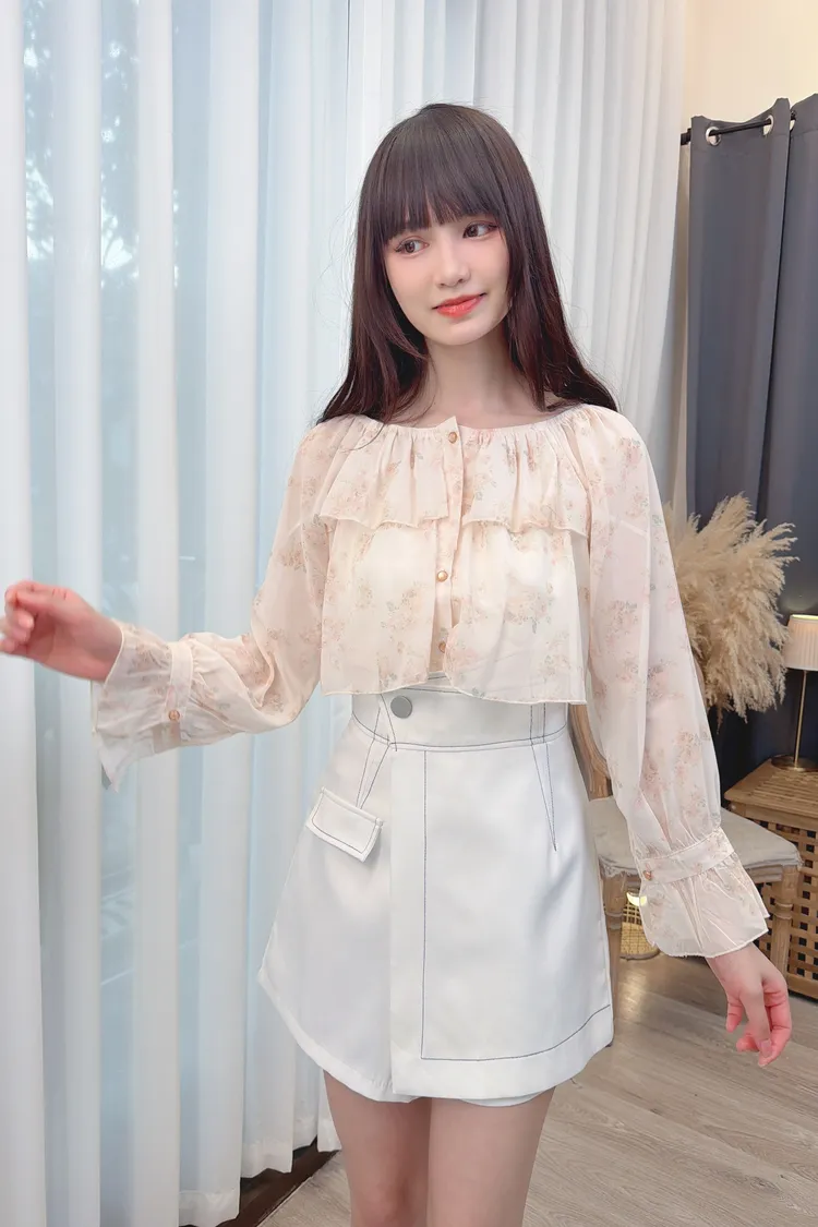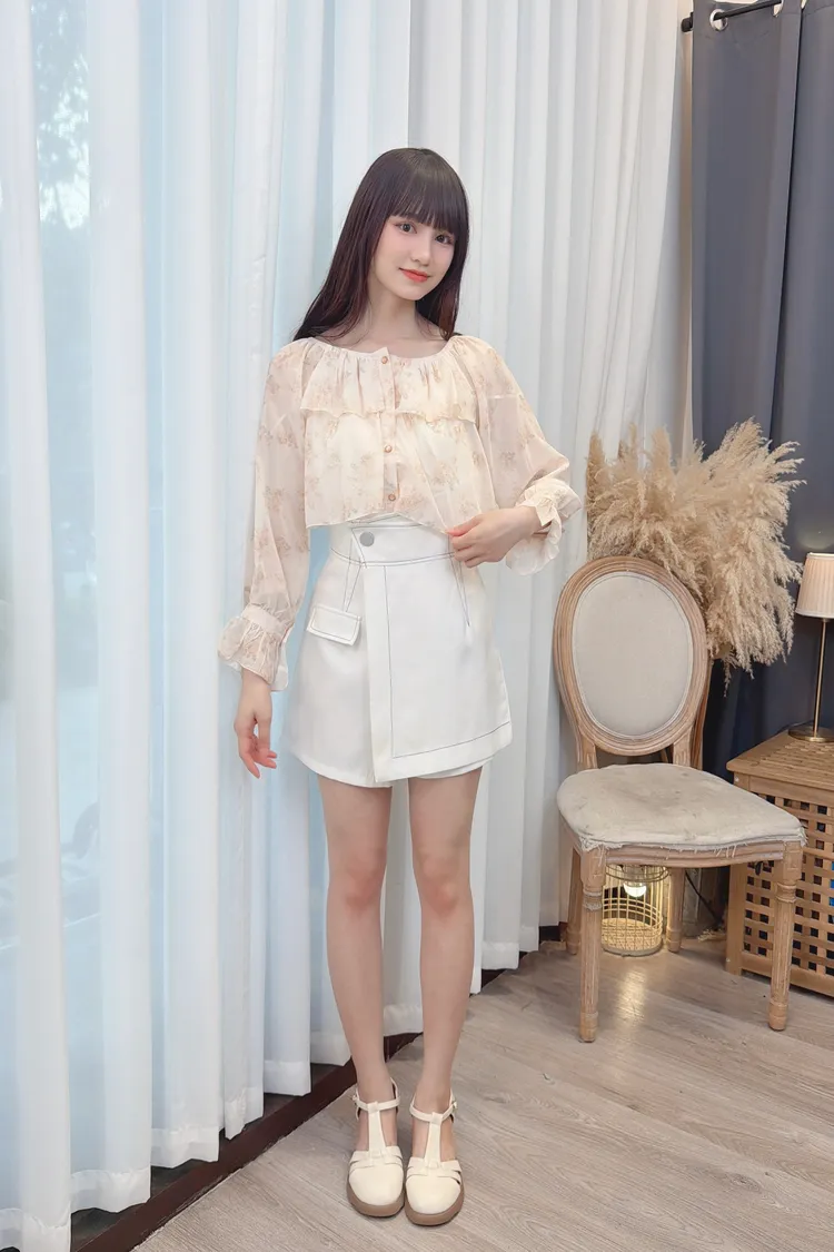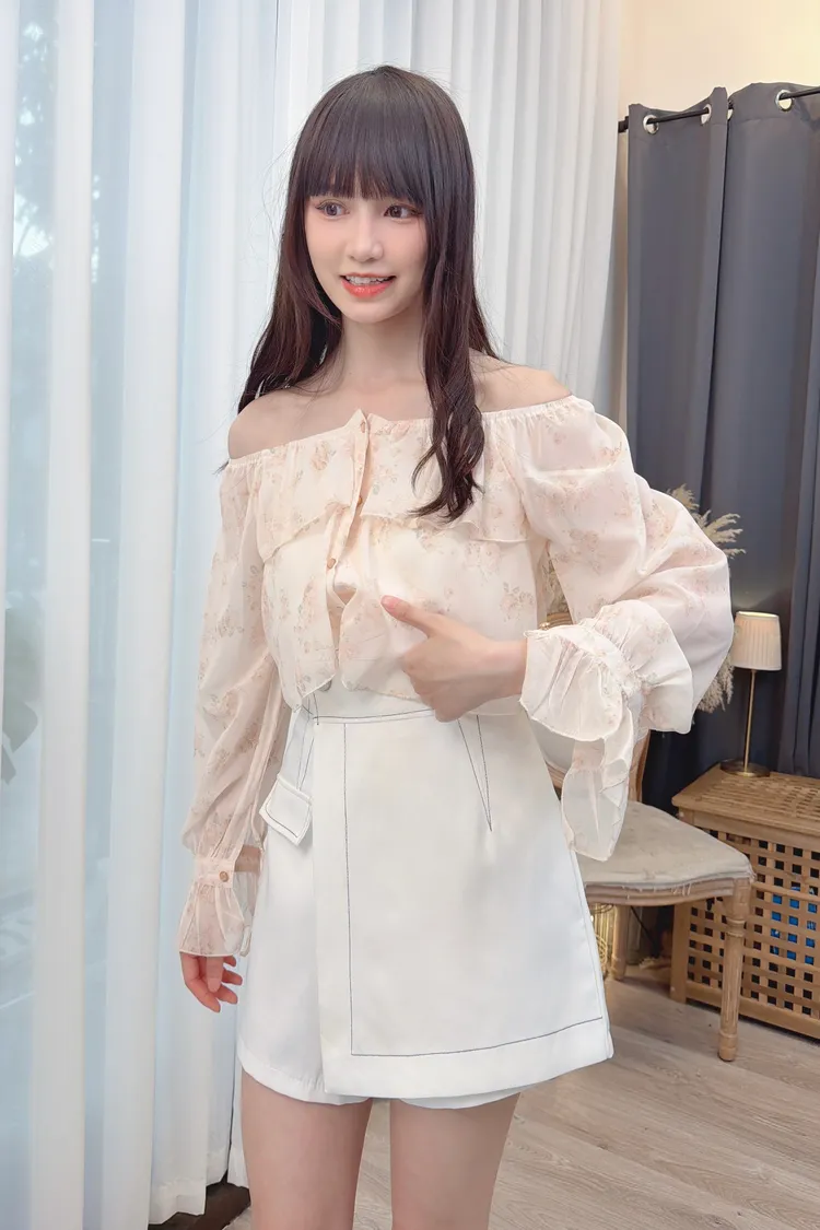前荷葉暈染花朵雪紡上衣/1色