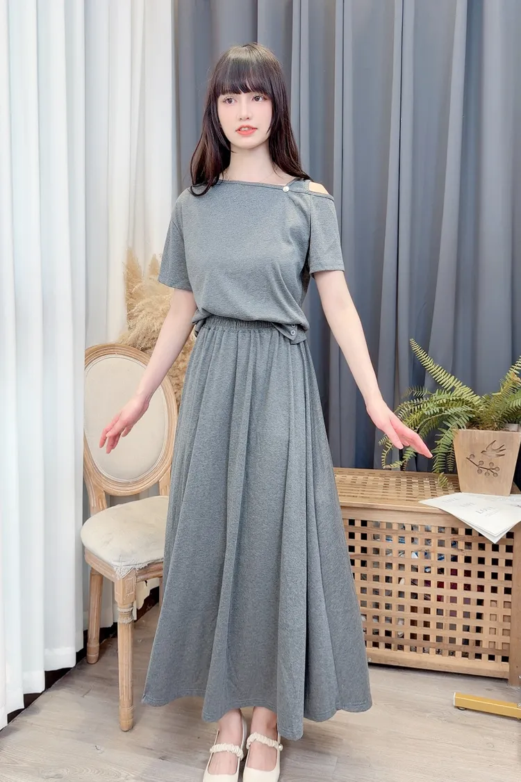 單露肩造型長裙套裝組/1色