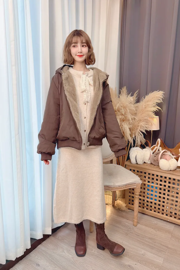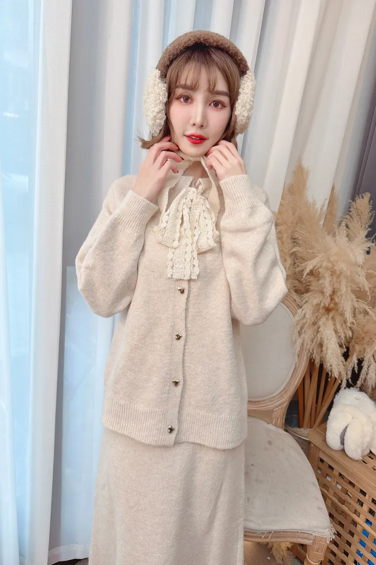 領蕾絲蝴蝶結針織長裙套裝/2色