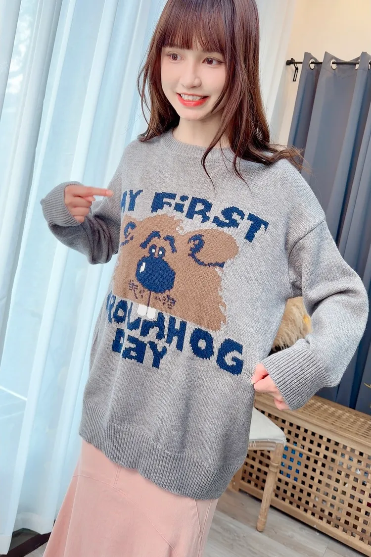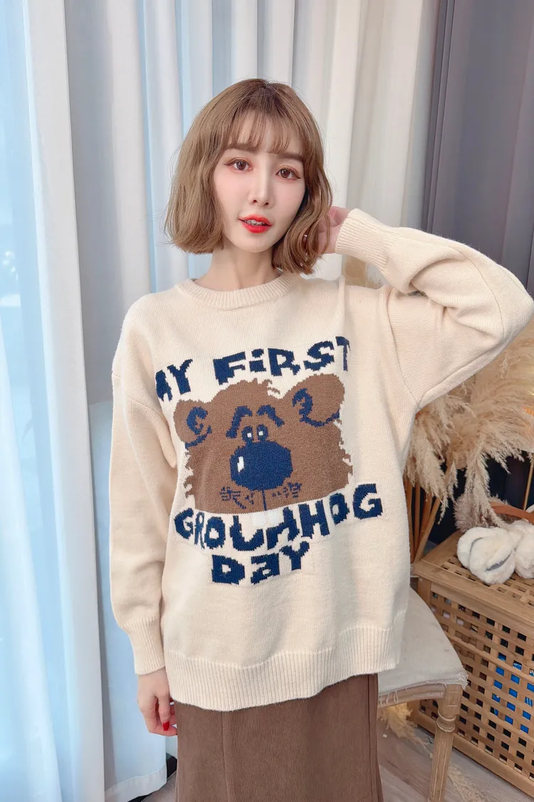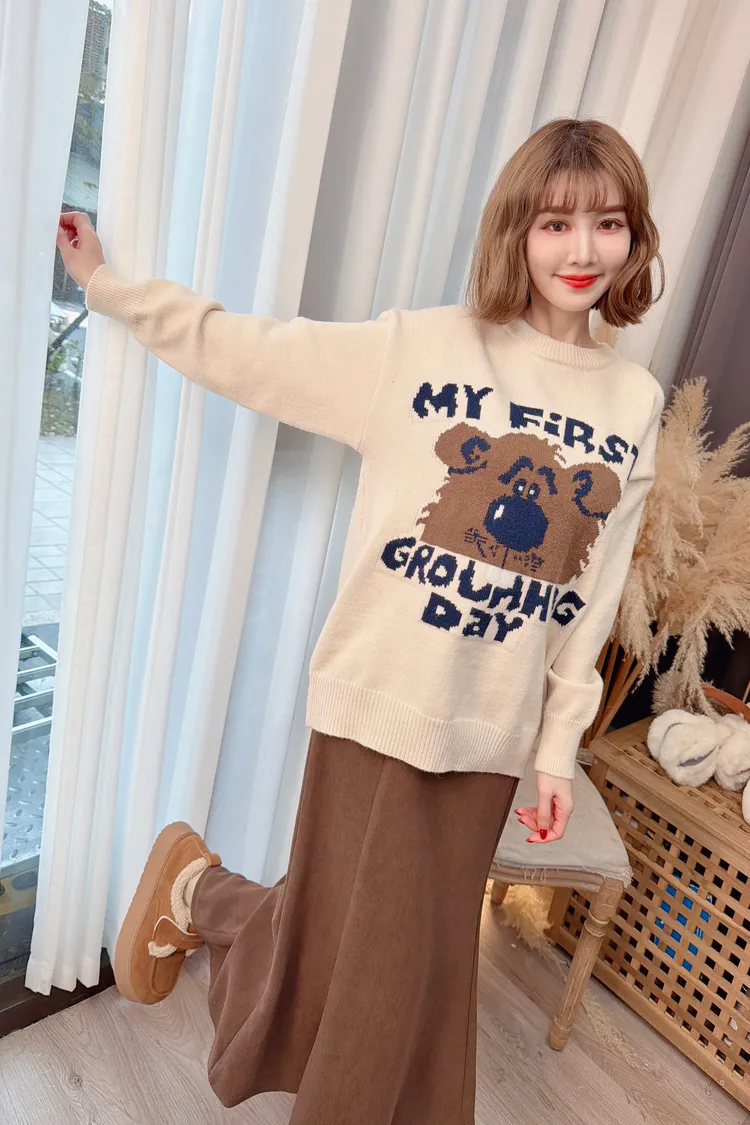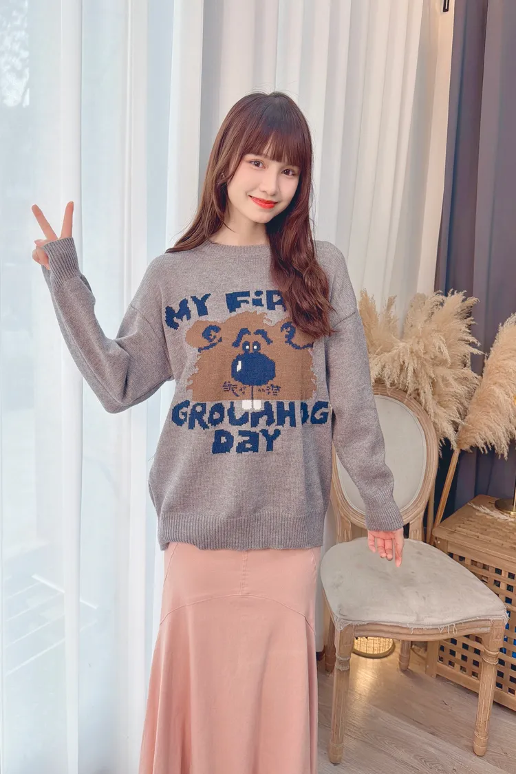 可愛熊熊字母針織上衣/2色
