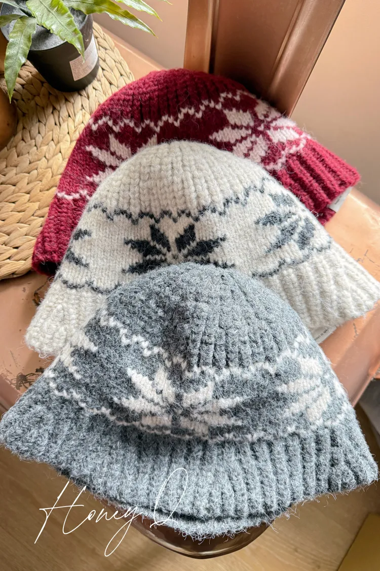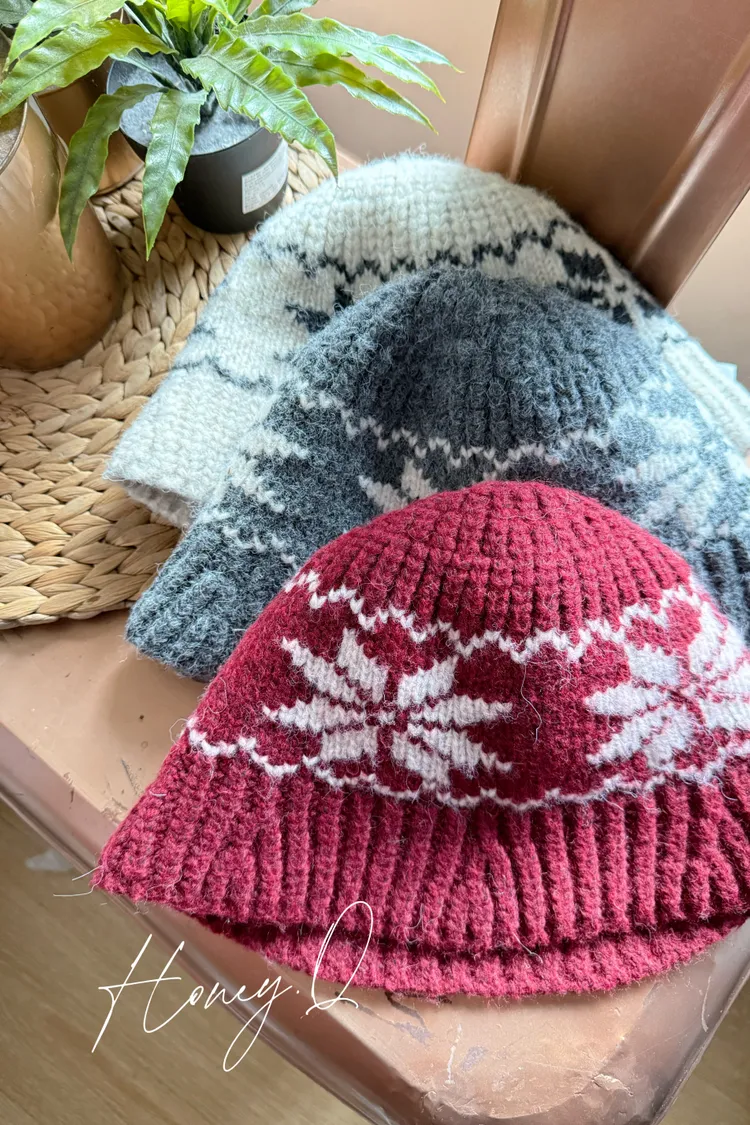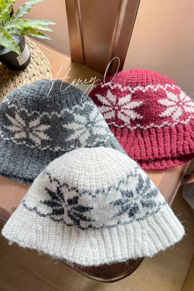 雪花圖案針織漁夫帽/3色