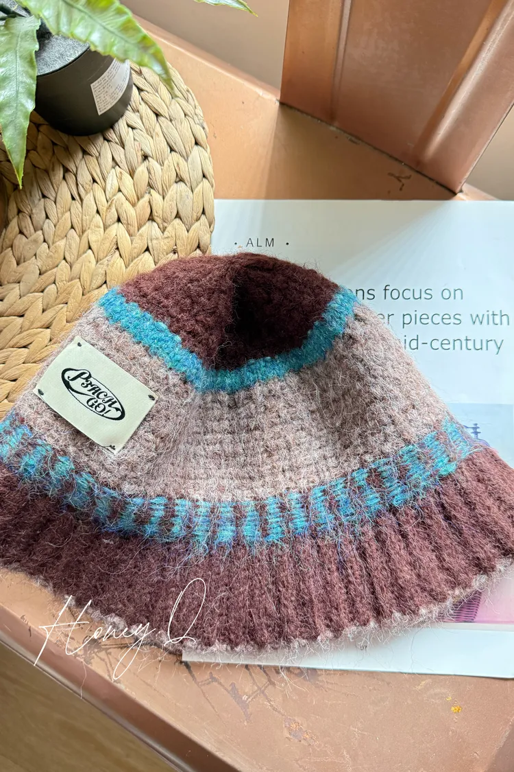 三配色針織漁夫帽/1色